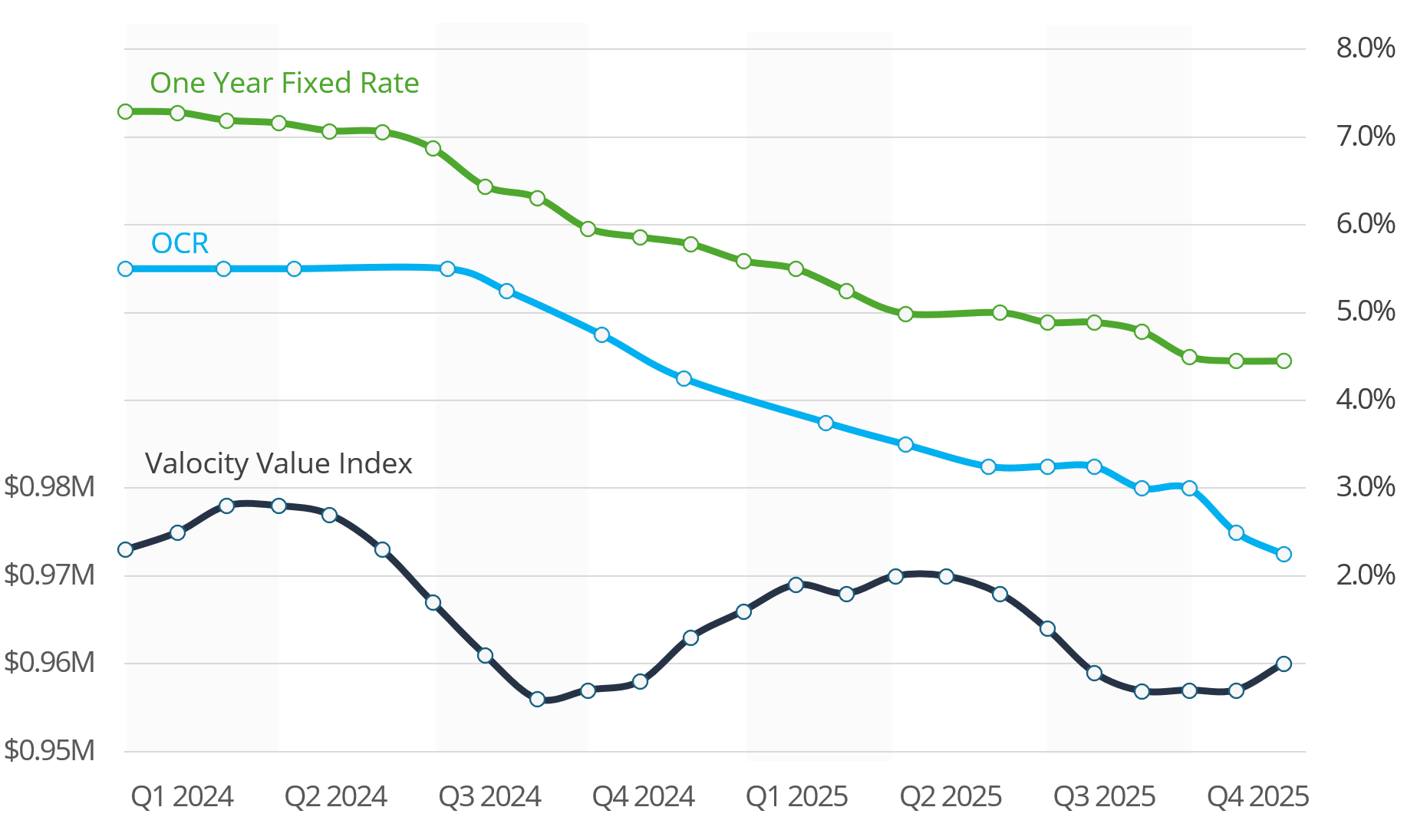 Despite this, the spring period brought early signs of a turnaround. Quarterly growth returned, with the national Valocity Value Index rising 0.3% in the three months to November and 0.2% over the past month. Transaction volumes and mortgage registrations also increased, signalling strengthening activity, even if rapid price gains remain unlikely. Of the 16 regions, 10 recorded quarterly value growth, and 10 experienced monthly gains.
